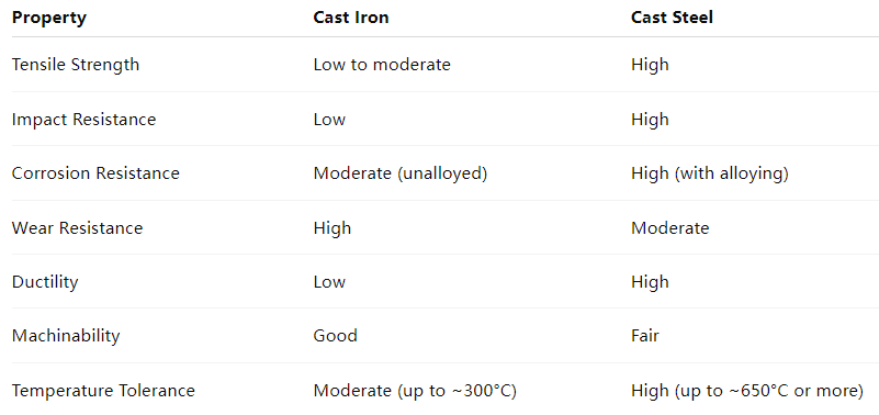 Kada je riječ o mehaničkim svojstvima, lijevani čelik nadmašuje lijevano željezo u gotovo svim aspektima. Lijevani čelik pokazuje veću vlačnu čvrstoću, otpornost na udarce i žilavost. Ova svojstva ga čine prikladnim za okruženja visokog tlaka i visoke temperature, kao i za primjene podložne mehaničkim udarima i vibracijama.