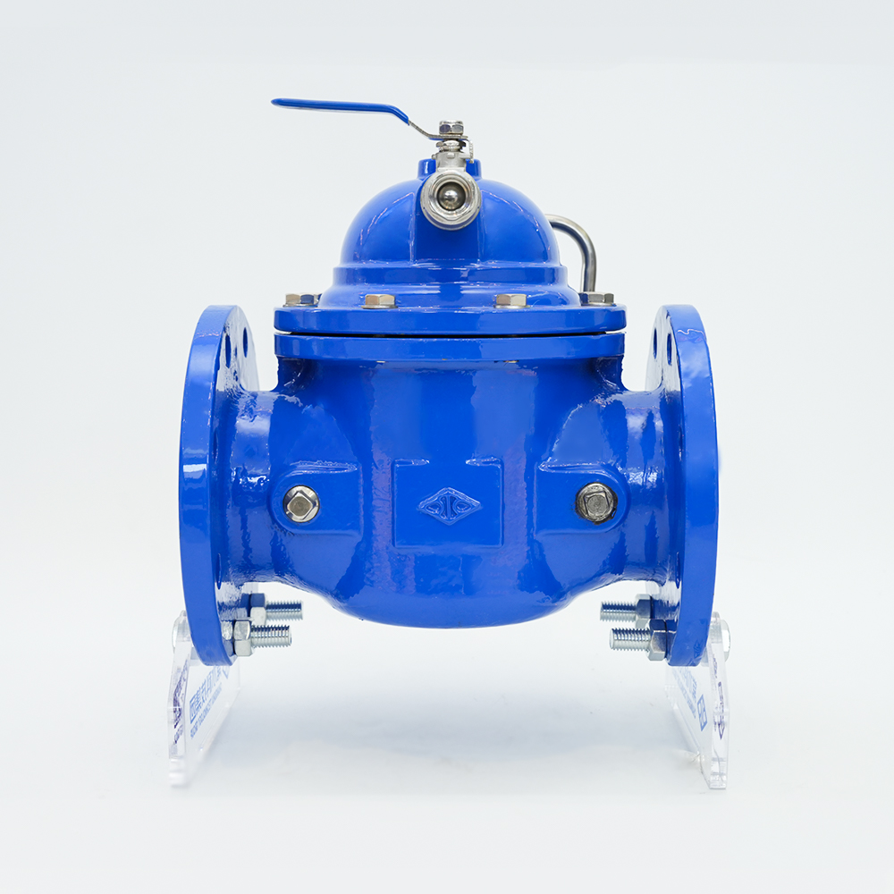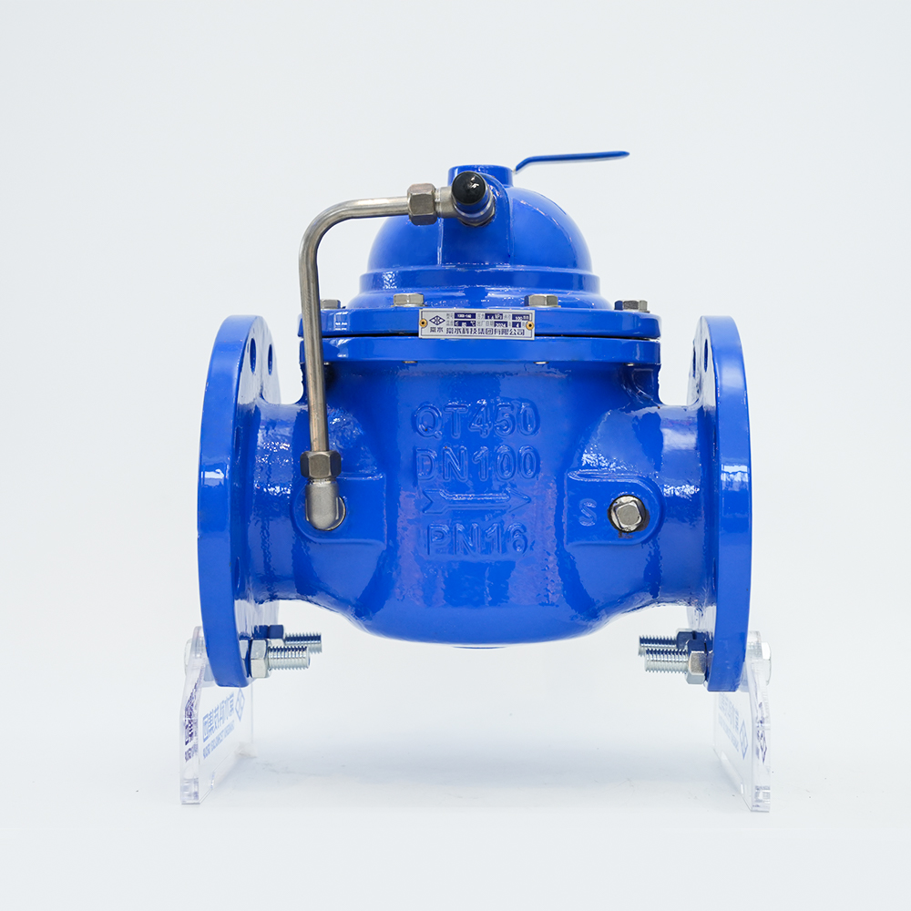 Hidraulički regulacijski ventil je ventil kojim se upravlja pritiskom vode. Sastoji se od glavnog ventila i njegovog pričvršćenog voda, pilot ventila, igličastog ventila, kuglastog ventila i manometra. Ovisno o namjeni, funkciji i mjestu uporabe, može se razviti u ventile s plovkom na daljinsko upravljanje, ventile za smanjenje tlaka, nepovratne ventile za sporo zatvaranje, ventile za regulaciju protoka, ventile za smanjenje tlaka, hidraulične električne regulacijske ventile itd. Hidraulički regulacijski ventili dijele se na membranski i klipni. Njihovi principi rada su isti. Pokreće ih razlika tlaka SP između uzvodnog i nizvodnog i kontrolira pilot ventil tako da dijafragma (klip) radi hidraulički diferencijalno i potpuno se automatski podešava hidraulikom. Disk glavnog ventila je potpuno otvoren ili potpuno zatvoren ili u reguliranom stanju. Kada se tlačna voda koja ulazi u upravljačku komoru iznad dijafragme (klipa) ispušta u atmosferu ili nizvodno područje niskog tlaka, vrijednost tlaka koja djeluje na dno diska ventila i ispod dijafragme veća je od vrijednosti tlaka iznad, tako da se disk glavnog ventila gura u potpuno otvoren položaj; kada se tlačna voda koja ulazi u upravljačku komoru iznad dijafragme (klipa) ne može ispustiti u atmosferu ili nizvodno područje niskog tlaka, sila koja djeluje na klip dijafragme (klipa). Gornja vrijednost tlaka veća je od donje vrijednosti tlaka, tako da će disk glavnog ventila biti pritisnut u potpuno zatvoren položaj. Kada je vrijednost tlaka u kontrolnoj komori iznad dijafragme (klipa) između ulaznog tlaka i izlaznog tlaka, disk glavnog ventila je u stanju podešavanja, a njegov položaj podešavanja ovisi o učinku upravljanja vezom igličastog ventila i podesivog pilot ventila u cjevovodnom sustavu. Podesivi pilot ventil može otvoriti ili zatvoriti vlastiti mali otvor ventila kroz nizvodni izlazni tlak i mijenjati se s njim, mijenjajući tako tlak kontroliran iznad dijafragme (klipa) i kontrolirajući položaj podešavanja diska glavnog ventila.
