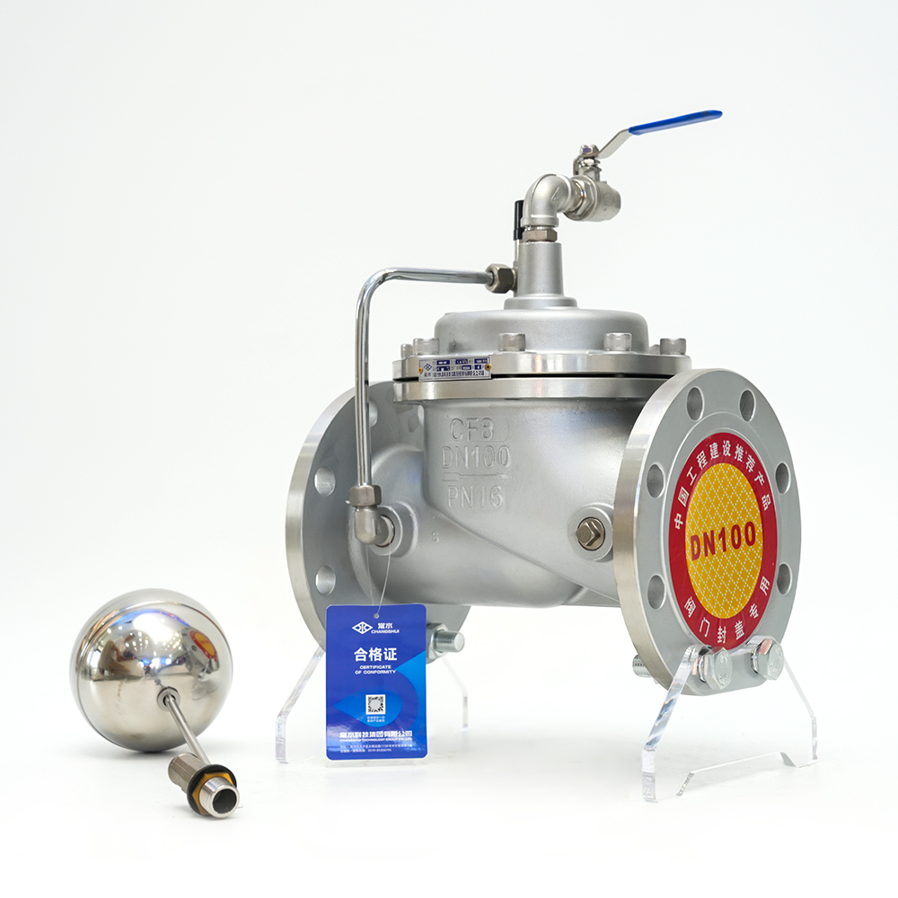Ventil s plovkom na daljinsko upravljanje sastoji se od glavnog ventila i vanjskog vodećeg ventila. Koristi plutajuću kuglu u vodi za povezivanje vodećeg ventila zbog promjena u razini tekućine, tako da glavni ventil dovodi vodu i zatvara se, čime se kontrolira razina vode u bazenu (spremniku) i vodotornju unutar određenog raspona kako bi se spriječilo prelijevanje i niska razina vode. Ovaj ventil je prikladan za automatske sustave vodoopskrbe raznih bazena (spremnika) i vodenih tornjeva u industrijskim i rudarskim poduzećima i civilnim zgradama, a također se koristi u atmosferskim kotlovskim cirkulacijskim sustavima vodoopskrbe. Glavni ventil se brzo otvara i polako zatvara bez izazivanja vodenog udara. Čvrsto je zatvoreno i nema opasnosti od poplave.